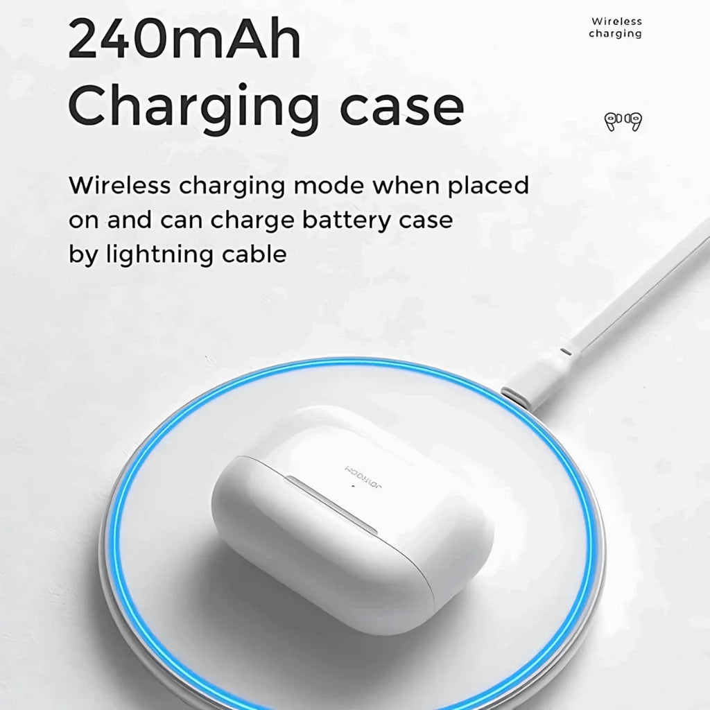 Joyroom T03s Pro earbuds offer up to 5 hours of playtime on a single charge, with an additional 20 hours provided by the charging case.