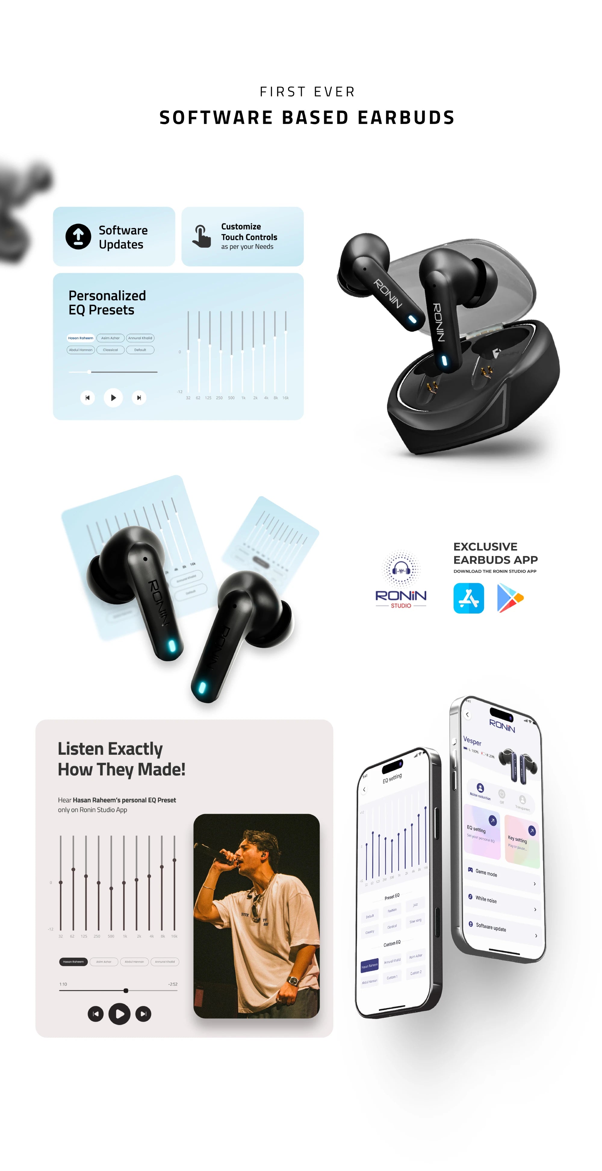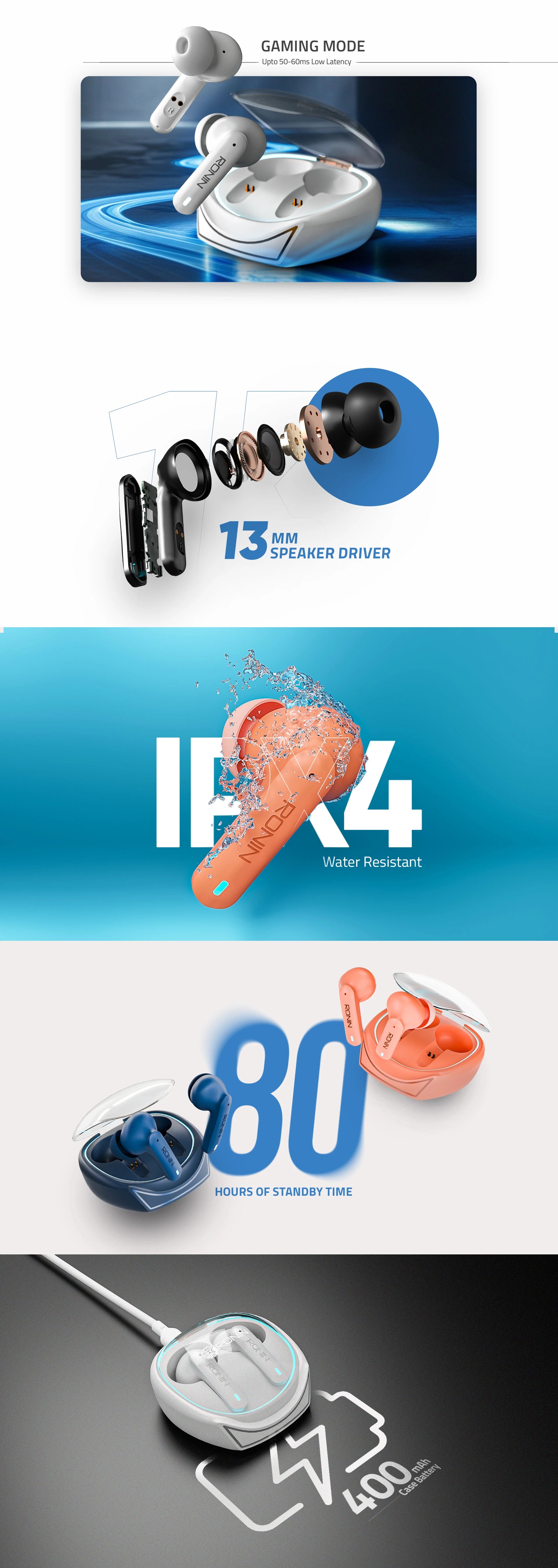 The R-520 Dynasty is built for those who demand performance and precision. With up to 7 hours of playtime, it keeps your vibe going without interruption. Enjoy powerful bass and crisp highs from 13mm drivers, tuned for immersive listening through Music Mode. When itβs game time, switch to Gaming Mode for low-latency, lag-free audio that keeps you locked in. Crystal-clear calls are powered by Quad Mic ENC, cutting through noise so your voice always stands out. AI Voice Assistance gives you hands-free control, while intuitive touch gestures let you manage your music with ease. Connect to the Ronin Studio app to customize EQ, adjust touch settings, and keep your earbuds up to date. Dynasty gives you full control over your sound, your way.