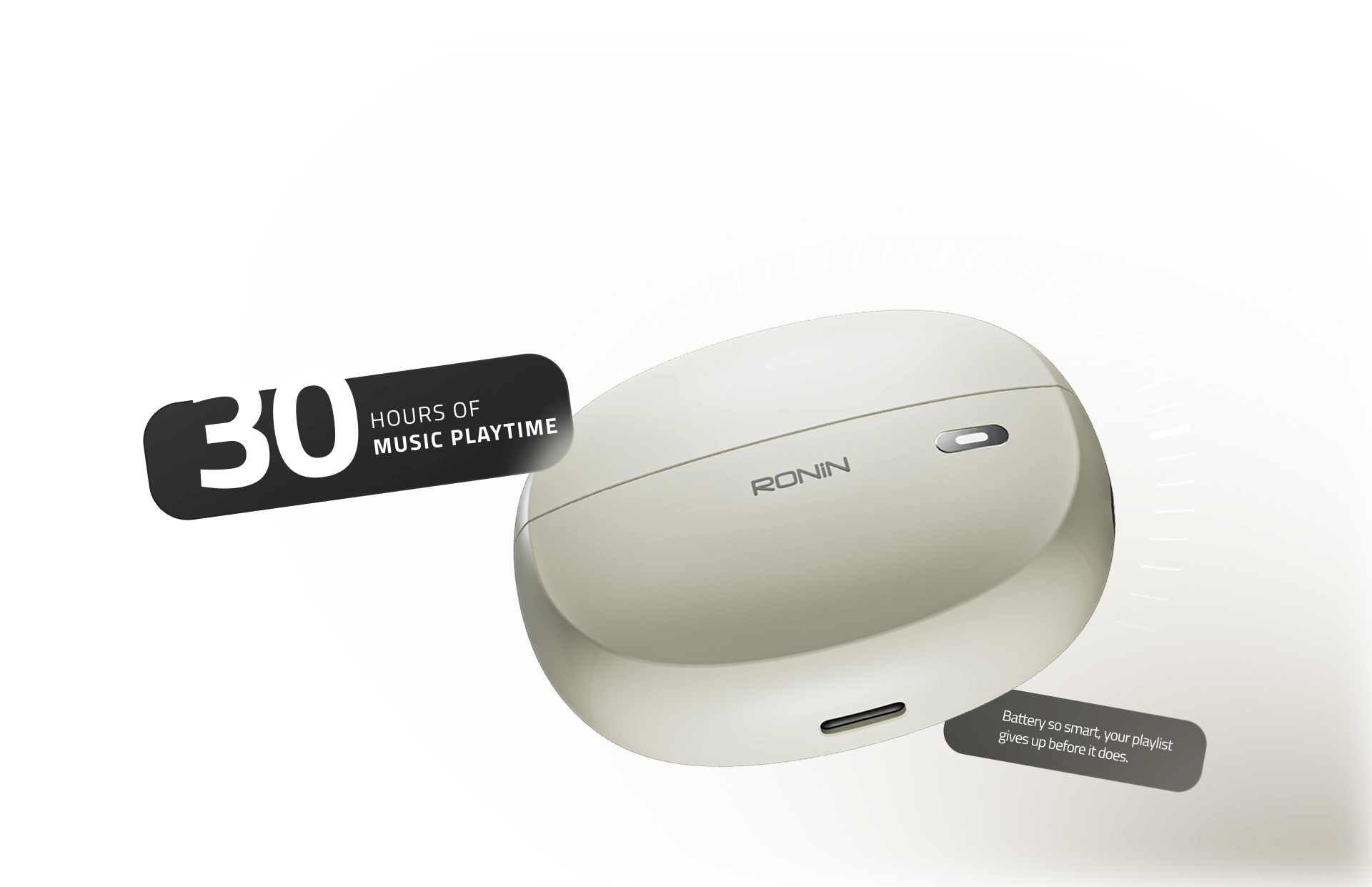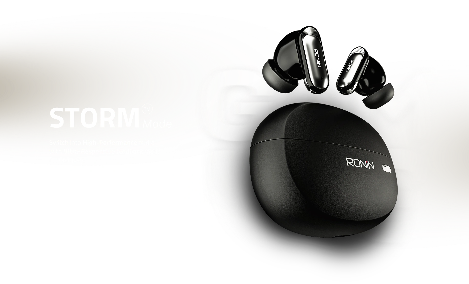 Designed with a sleek dual-tone matte finish, Eminence R-7050 doesn’t just deliver function, it defines your style. Engineered with Hybrid Active Noise Cancellation and Qnx™ Environmental Noise Cancellation, it filters distractions from your surroundings while delivering immersive, spatial audio. Whether you're tuning in or tuning out, the experience remains clear and captivating.Enjoy up to 5 hours of continuous playback, backed by a 320mAh battery case for extended use and 80 hours of standby time. With Storm™ Gaming Mode for ultra-low latency and White Noise Mode for mindful relaxation. Ronin Eminence R-7050 is not just another earbud. It’s a statement in sound, connection, and comfort. Built for the multitasker, crafted for the achiever.